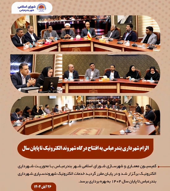 کمیسیون معماری و شهرسازی شورای اسلامی شهر بندرعباس با محوریت شهرداری الکترونیک برگزار شد و در پایان مقرر گردید خدمات الکترونیک شهروندسپاری شهرداری بندرعباس تا پایان سال ۱۴۰۴به بهرهبرداری برسد.