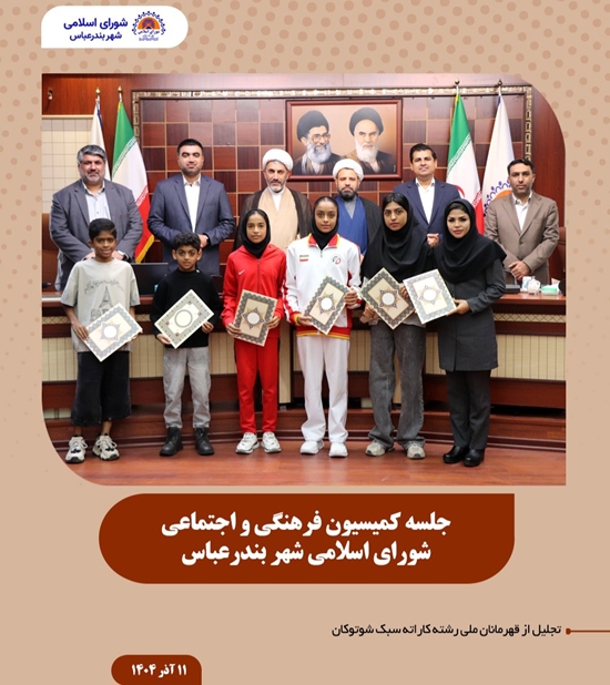 در کمیسیون فرهنگی اجتماعی شورای اسلامی شهر بندرعباس که روز سه‌شنبه یازدهم آذرماه ۱۴۰۴ برگزار شد، از قهرمانان ملی رشته کاراته سبک شوتوکان تقدیر به عمل آمد.
