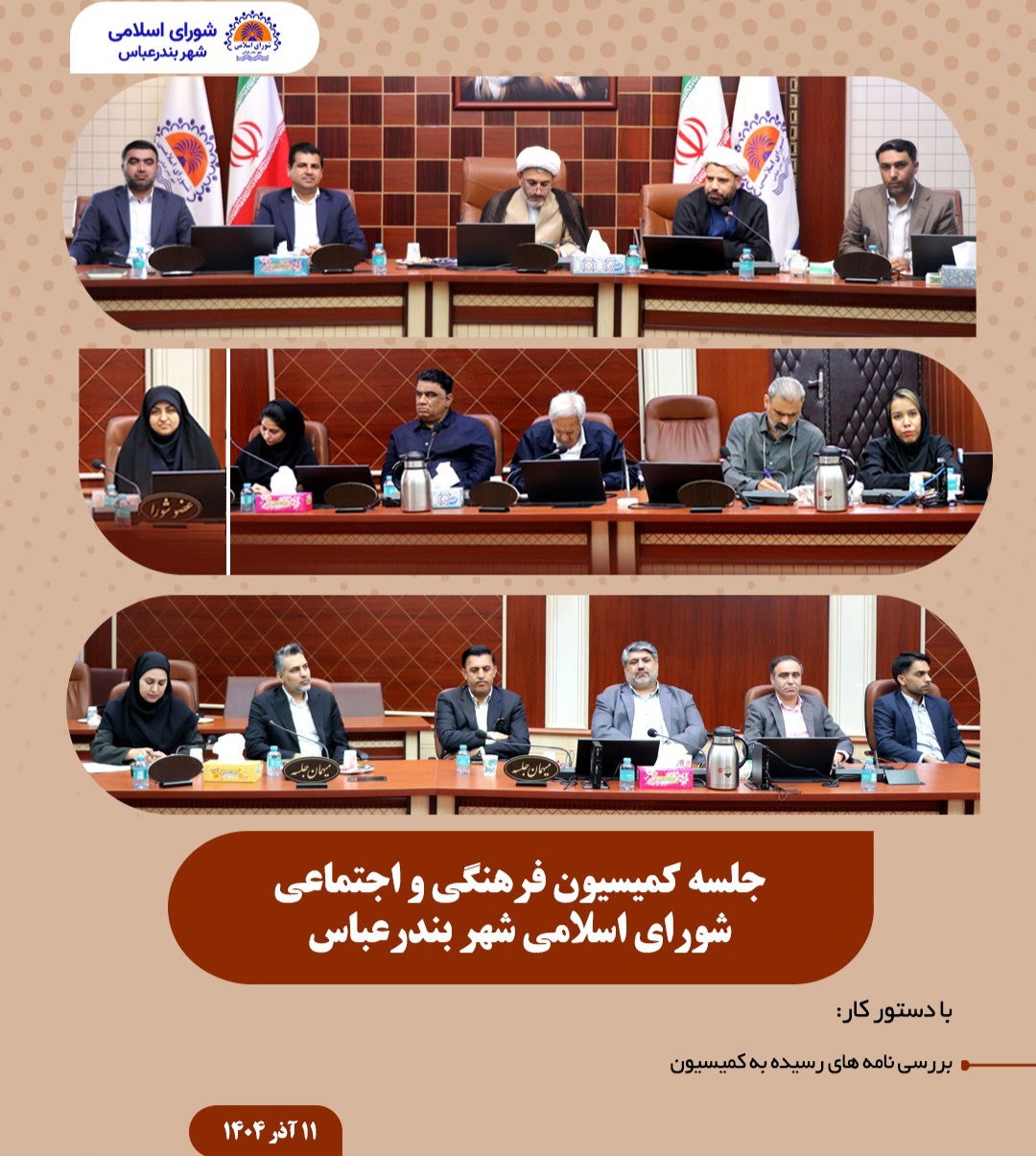 به گزارش روابط عمومی شورای اسلامی شهر بندرعباس، جلسه کمیسیون با حضور حجت‌الاسلام والمسلمین عبدالرضا حیدری سراحی رئیس شورا، حجت‌الاسلام والمسلمین احمد عامری سیاهویی رئیس کمیسیون، اعضای کمیسیون و مدیران مرتبط شهرداری با چندین دستور کار از جمله ؛