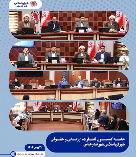 جلسه کمیسیون نظارت، ارزیابی و حقوقی شورای اسلامی شهر بندرعباس با حضور رئیس و اعضای کمیسیون و اعضای شورای اسلامی شهر بندرعباس و مدیران مرتبط از شهرداری، با دستور کار بررسی نامه های رسیده از شهرداری بندرعباس برگزار گردید.