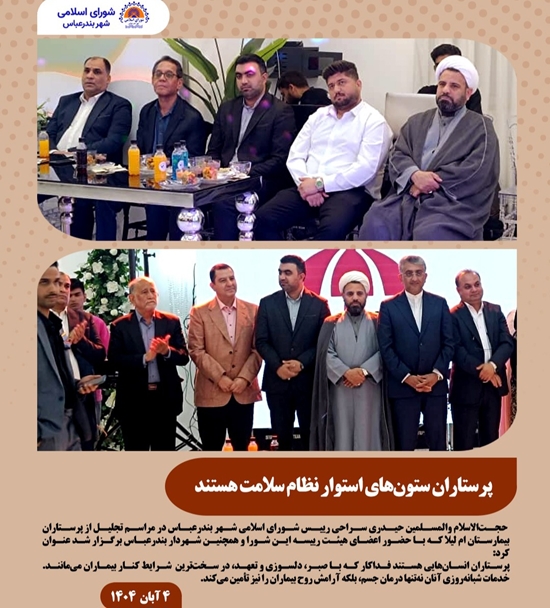 وی گفت: شورای اسلامی شهر بندرعباس، قدردان تلاش‌های شبانه‌روزی شماست و خود را موظف می‌داند که در برنامه‌ریزی‌های شهری، جایگاه واقعی پرستاران را در نظر بگیرد؛ چه در حوزه رفاه، چه در حوزه امنیت شغلی و چه در ارتقاء منزلت اجتماعی.