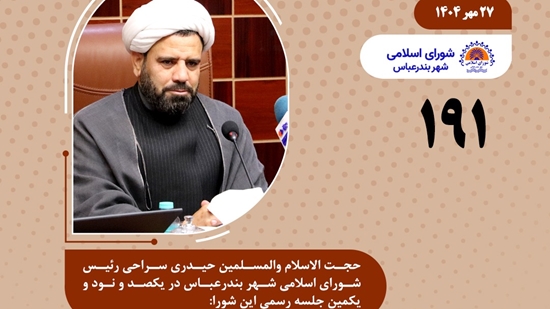 جلسه ۱۹۱ شورای اسلامی شهر بندرعباس با حضور فرمانده انتظامی شهرستان بندرعباس، شهردار بندرعباس و جمعی از مدیران شهری برگزار شد. رئیس شورای اسلامی شهر بندرعباس در این جلسه، ضمن تبریک هفته تربیت بدنی، امنیت پایدار را نتیجه مشارکت مردمی و پشتیبانی همه‌جانبه از نیروی انتظامی دانست.
